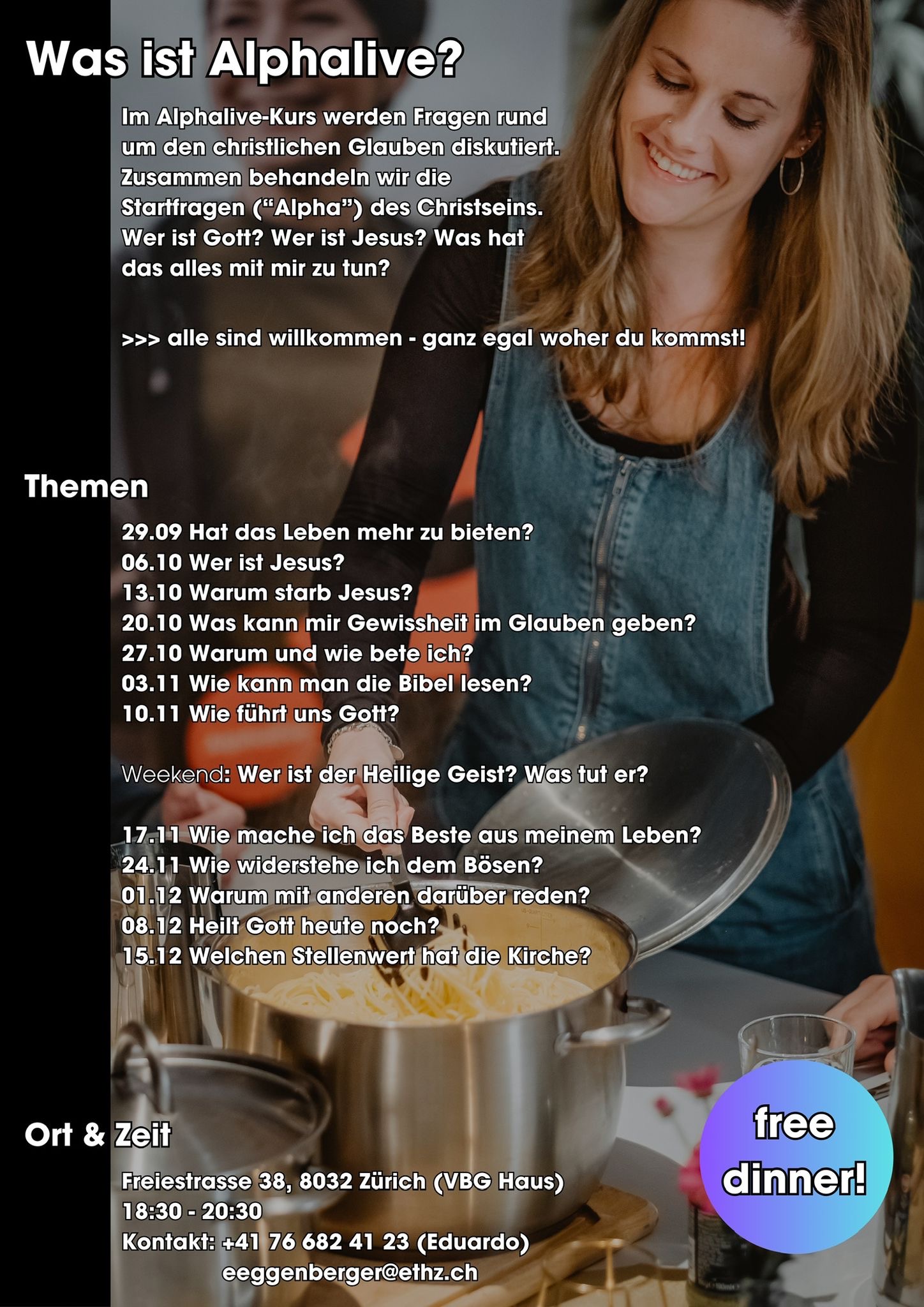 Wir laden dich ein, dich gemeinsam mit anderen Menschen auf die Suche nach Antworten auf deine Fragen zu machen. Zusammen wollen wir Gemeinschaft erleben und den christlichen Glauben entdecken. Du bist herzlich eingeladen einmal oder gerne auch regelmäßig dabei zu sein.